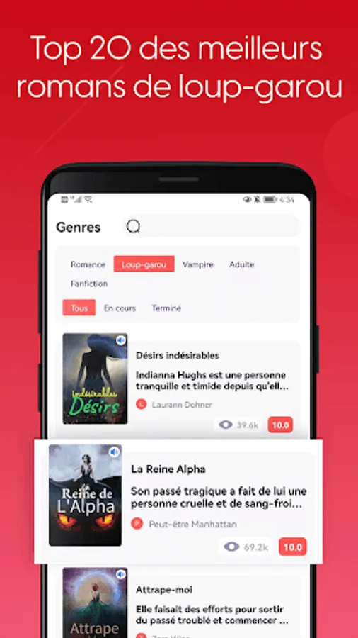 BooksApp contains many genres of online novels: Werewolf, Vampire, Billionaire, Bossy President, Thriller, Quotes, College Romance, LGBTQ+, Urban Love. It is the most awaited online romance novel app.