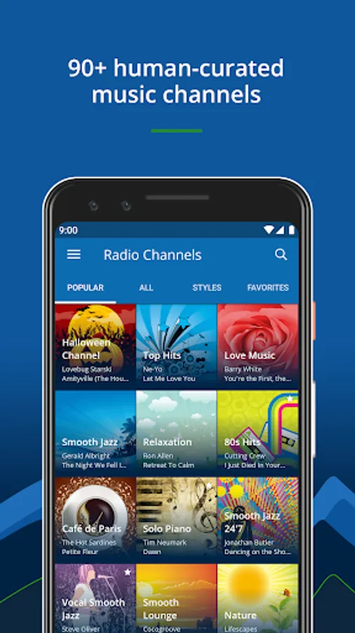RadioTunes offers over 90 streaming radio channels of the best music available in a variety of genres. Each one is programmed by a real channel manager who is an expert in that style of music. Find all your favorite styles including Pop, Rock, 70’s, 80’s, 90’s, Smooth Jazz, Romantic, Easy Listening, International Music, and many more!