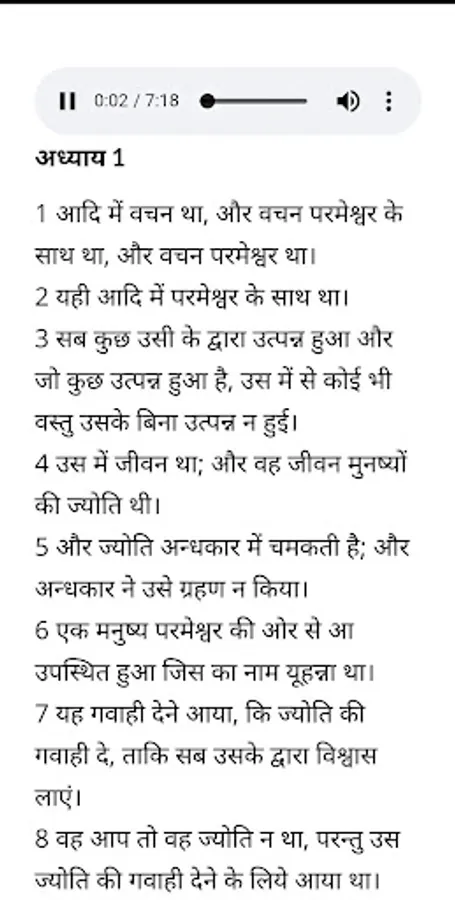 Hindi Audio Bible application allows you to listen to Hindi Bible at the same time you can read it.