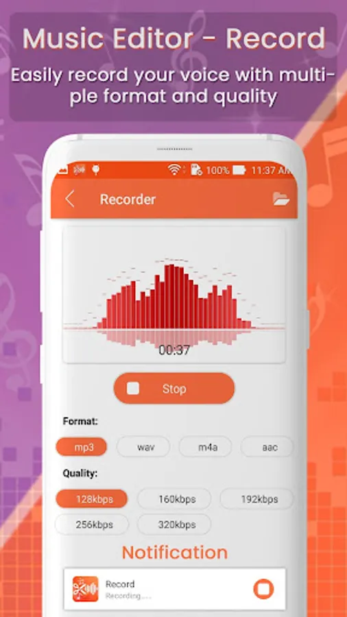 - Record audio with multiple formats supports MP3, WAV, AAC, M4A and most other music formats