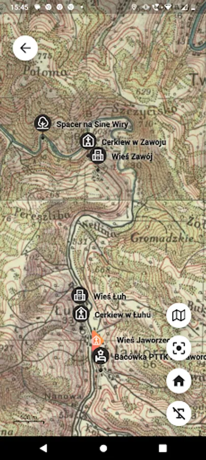 NEW 2023: Backgrounds of the WIG map from 1934! Discover forgotten villages and roads, go to Tworylne or Berehy. You can display your position on the OSM map (as before) or on the old WIG map.