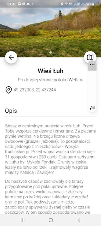 This app will be your travel companion. We will take you to the most interesting places in the area and tell you the easiest way to reach the most important places in the Bieszczady Mountains. We also have an audioguide for you around the former village of Jaworzec at the foot of Bacówka.
