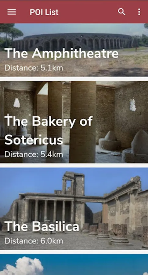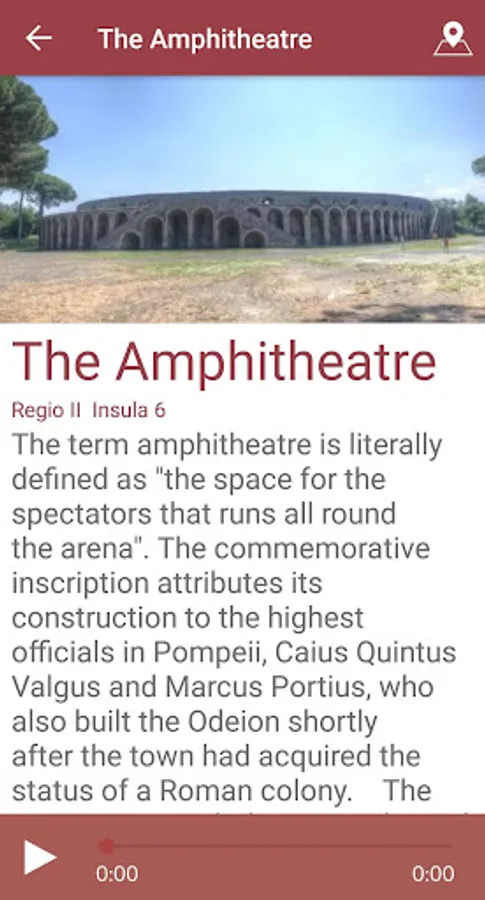Audio in 6 languages, Italian, English, Spanish, French, German and Russian. Thanks to the GPS you can freely visit the city of Pompeii ruins in all its beauty, making you drive through the streets of over 2000 years ago. The list of points can be ordered alphabetically and by distance from your position. Do not miss a single detail, visit the immortal city in the best possible way. Pompeii, the stunning place!