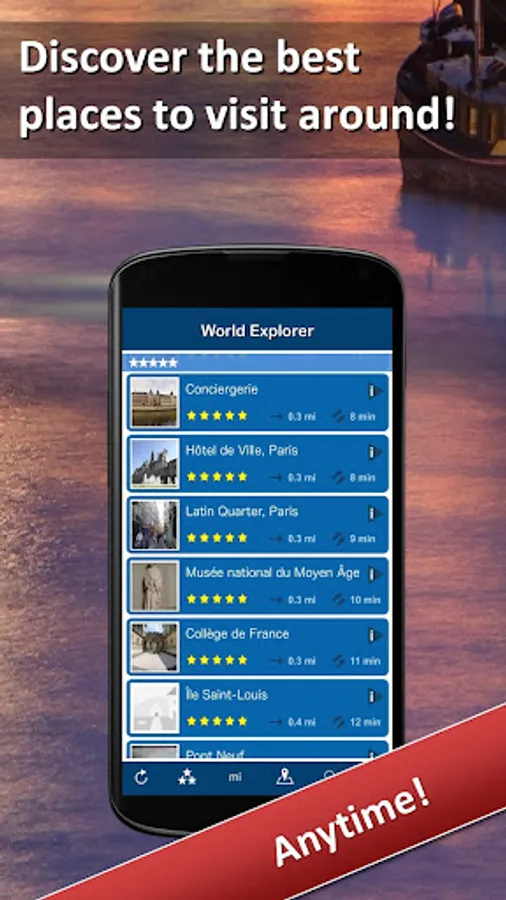 'World Explorer' is an incredible tour guide. Wherever you travel, this amazing app will spot the best places to visit, in the blink of an eye!