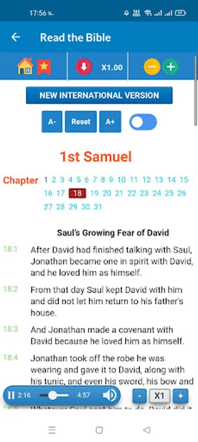 This New International Version Bible app was created to give everyone a new experience of studying the Holy Bible NIV. Enjoy this holy bible NIV application in android, which contains the Old Testament and New Testament with text and audio format. All in English. You can read and listen to the word of God at the same time with this New International Version Bible app.