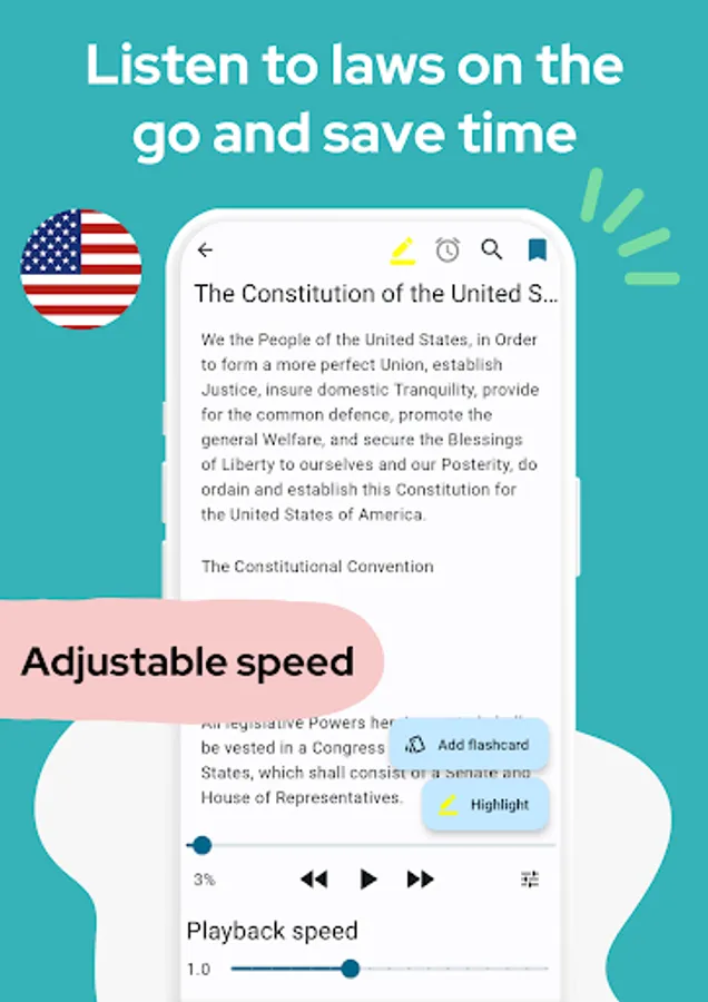 π² Audio Law Reader unites all laws in a single app, ensures you're updated with fresh case judgments, and empowers your recall with AI-crafted flashcards with ready-made questions and answers.