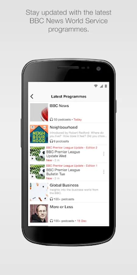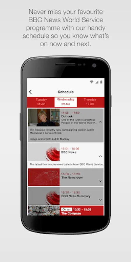The official BBC World Service news app by Zeno Media LLC offers the latest programmes and news headlines from the BBC World Service. You can to listen to the latest radio programmes using the free audio player or by using the telephone dial-up option (standard geographic mobile charges will apply. Please check with your provider for exact costs before calling).