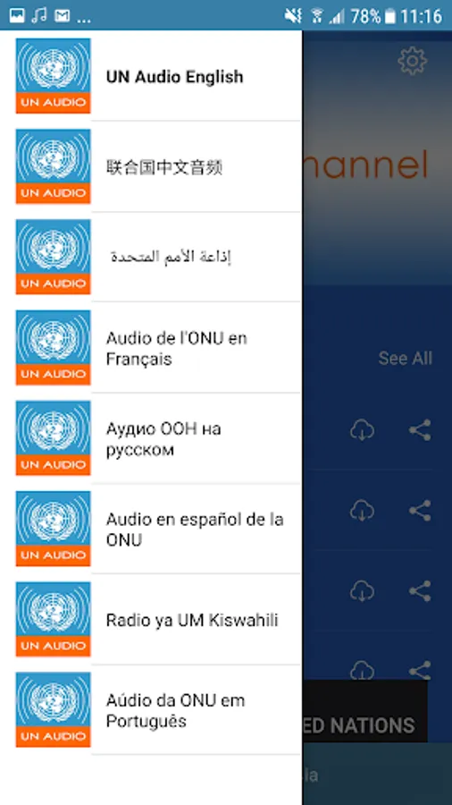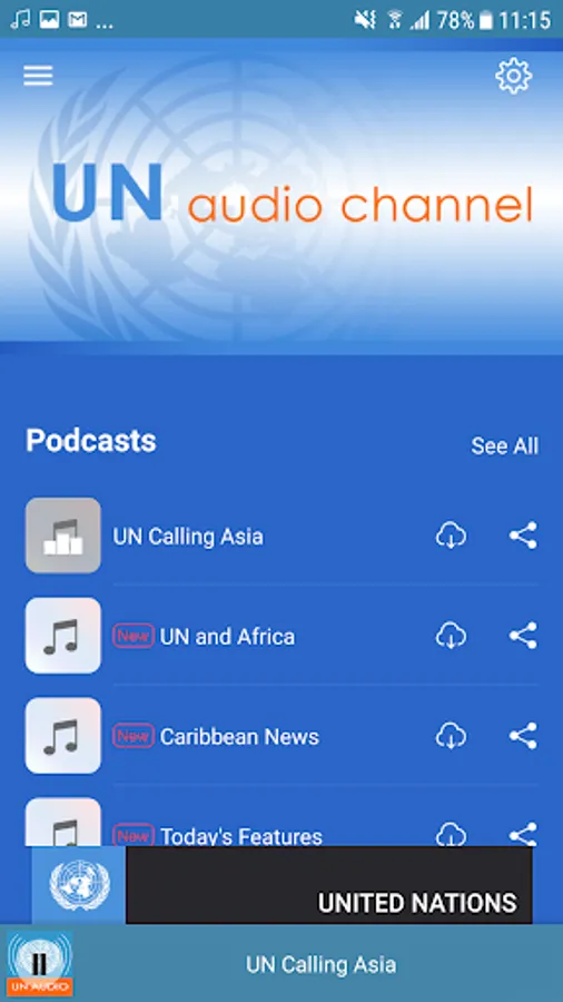 The UN Audio Channel app by AudioNow® Digital allows listeners access to: