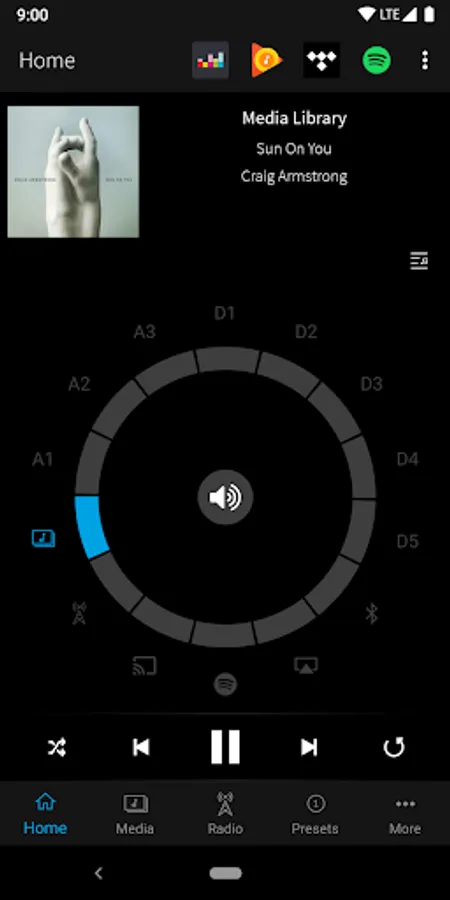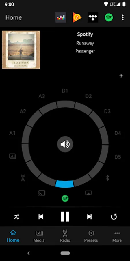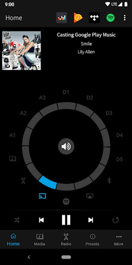 • Control Playback – Select audio sources, control volume and view Now Playing status