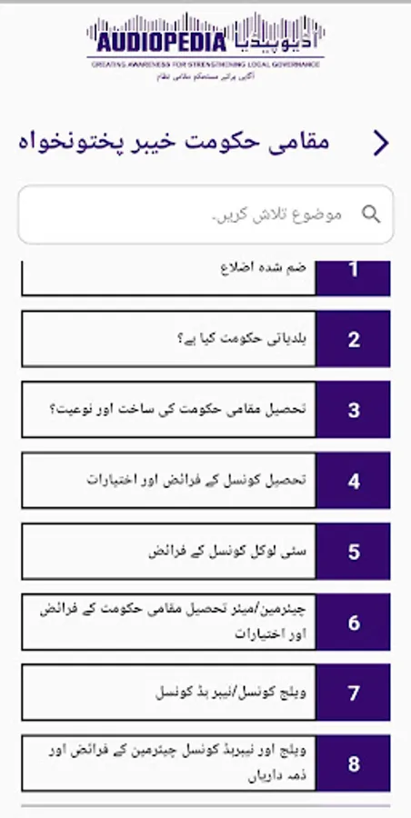Aagahi Baldiyat KP application will aware merged area of Khyber Pakhtunkhwa people to know every thing about their rights in the Province. This app can be used as a text as well as an audio.