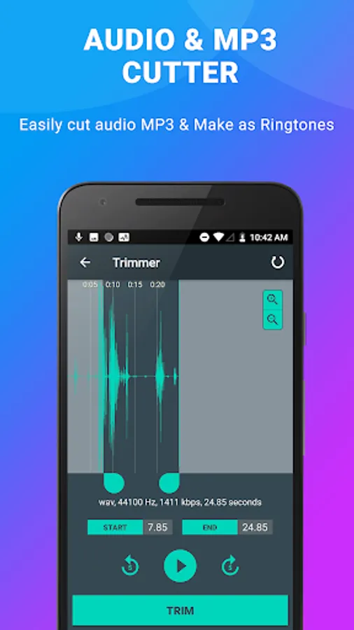 - Supports cut audio files in a simple way, cut audio recording