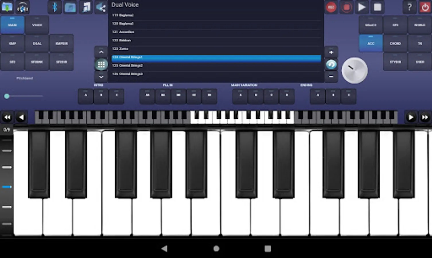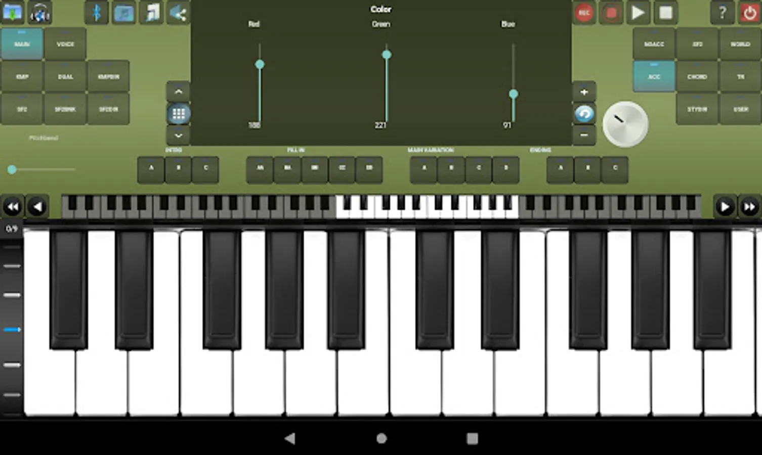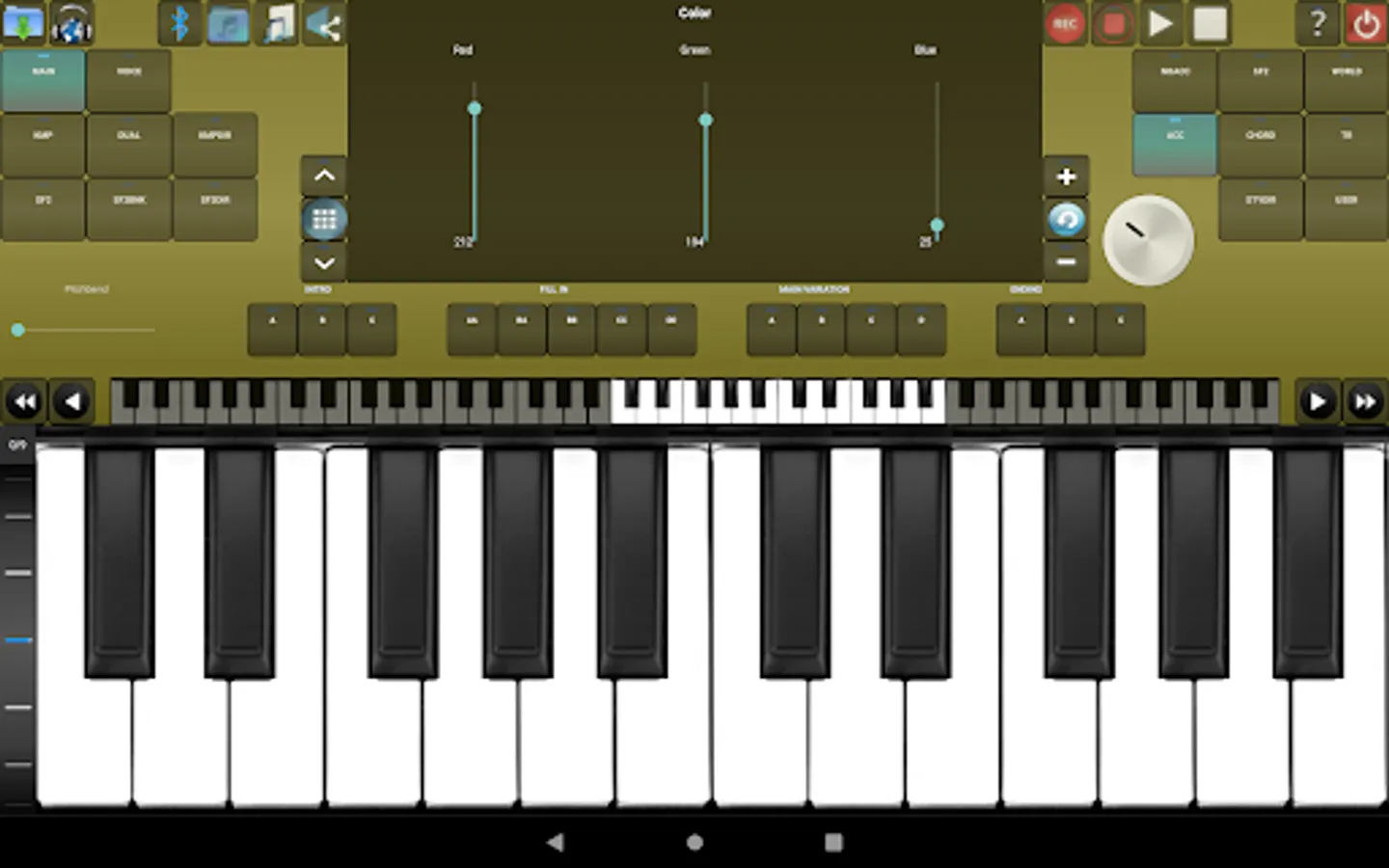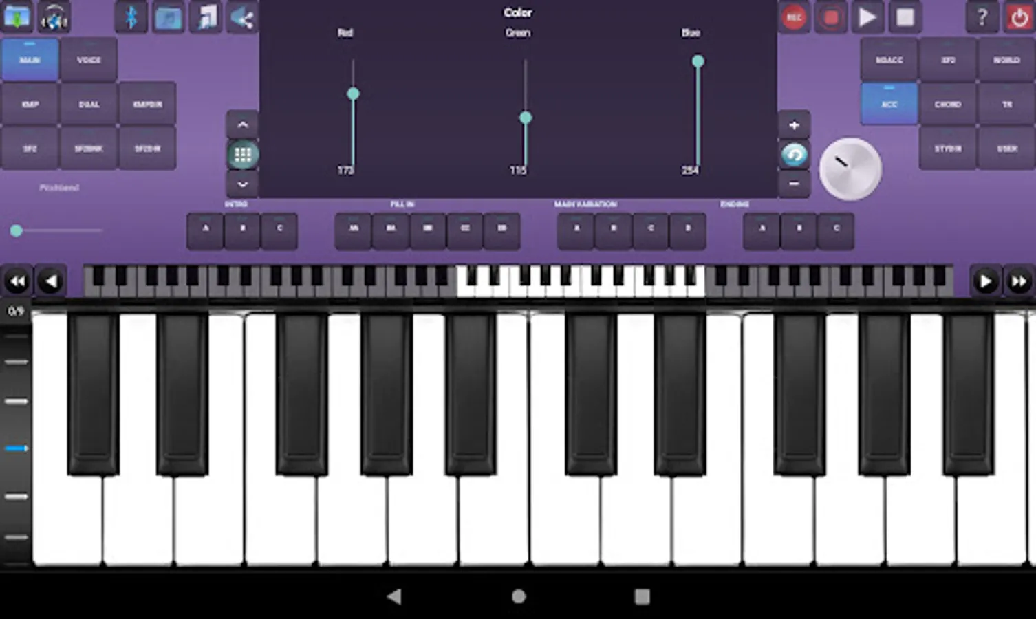 Arranger Keyboard is a professional piano app which allows you to play soundfont (Sf2) and KMP (KORG) instruments. Arranger Keyboard supports Bluetooth (BLE) MIDI keyboards and USB MIDI keyboards. You can play Yamaha Styles (STY) with accompaniment. There are 256 Yamaha styles in the app. You can dowload and load other Yamaha Styles. Arranger Keyboard has 127 voices including standard GM voices and additional oriental voices. You can load Sf2 and KMP files from your device and use Sf2 and KMP banks.