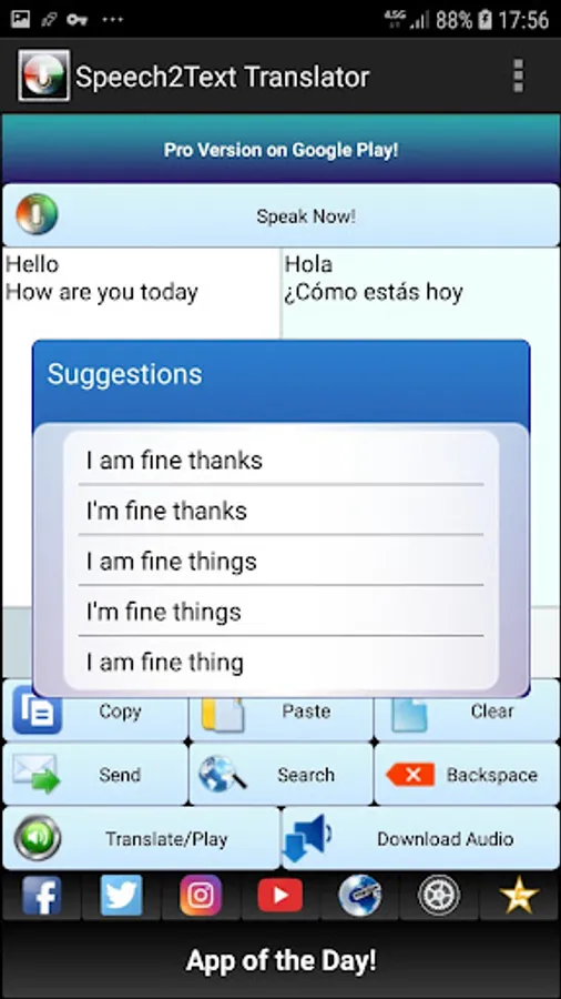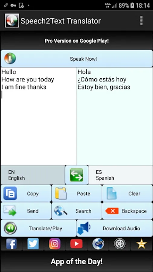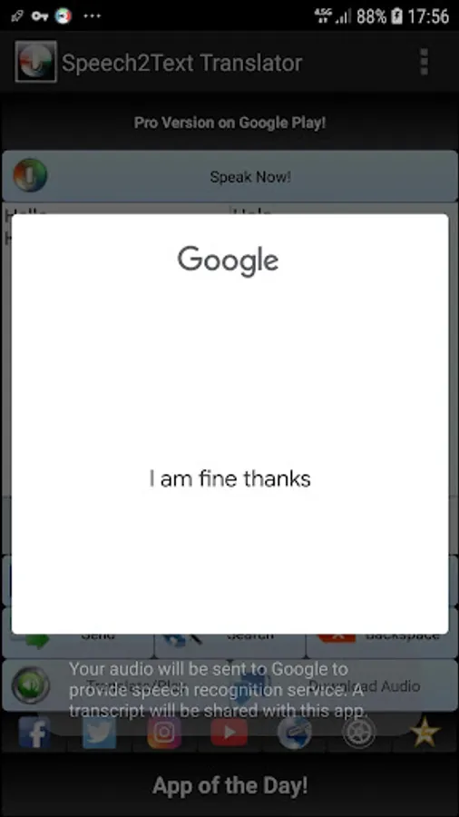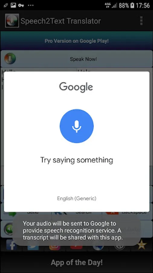 Speech to Text TTS Translator is a speech recognition, text to speech (TTS) and instant translator application, which allows you to take notes easily by speaking. You can copy these notes to clipboard and listen. You can send and share these notes with e-mail, SMS, social media and various instant messaging applications such as WhatsApp, Viber, Skype and vs. You can also search these notes on the web. Speech2Text, Text to Speech (TTS) and translation features are all in one application ! Speak, translate, listen, send and search using Speech to Text Translator ! You can also use this software for language education. You can learn to speak all languages. Enjoy Speech to Text TTS Translator!