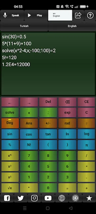 📏 Advanced Functions: Go beyond the basics with trigonometric functions like sine, cosine, tangent, and their inverses. Dive into logarithmic functions for more advanced math.