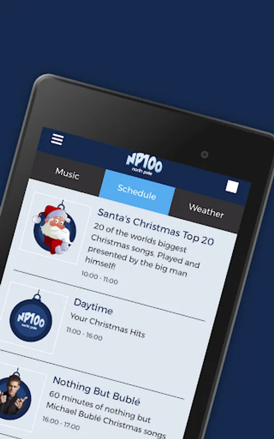 Featured hours include, Nothing But Bublé, The Big Chill and Santa’s Christmas Top 20.