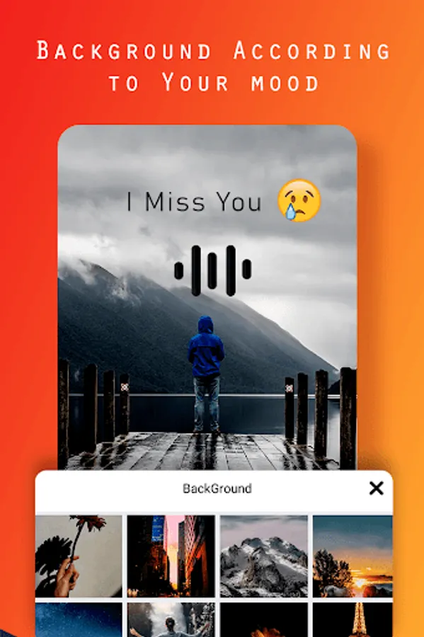 ◾ Audio Status Maker has some diverse spectacular backgrounds for your status. It also lets you create a status using your own custom images from the gallery or camera as the background.