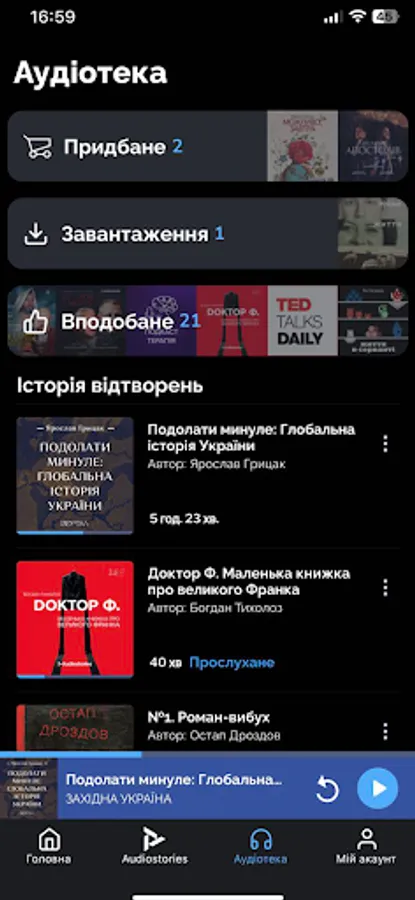 By using our application, you support the creation of future Ukrainian-language products and become a co-creator of the audio cultural space of Ukraine, which we all need today.