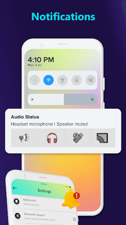 The Audio Output Switch app will assist you in enabling and switching your audio output to headphones, speakers, or other output devices. The other output device supports Cast, Bluetooth, and USB.