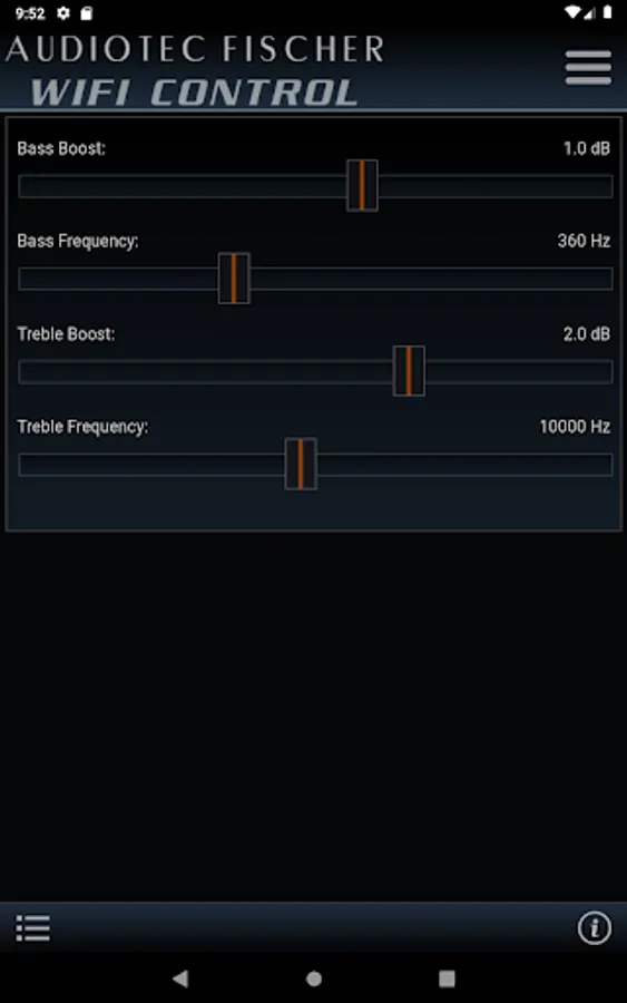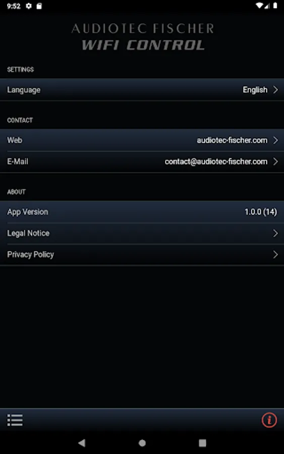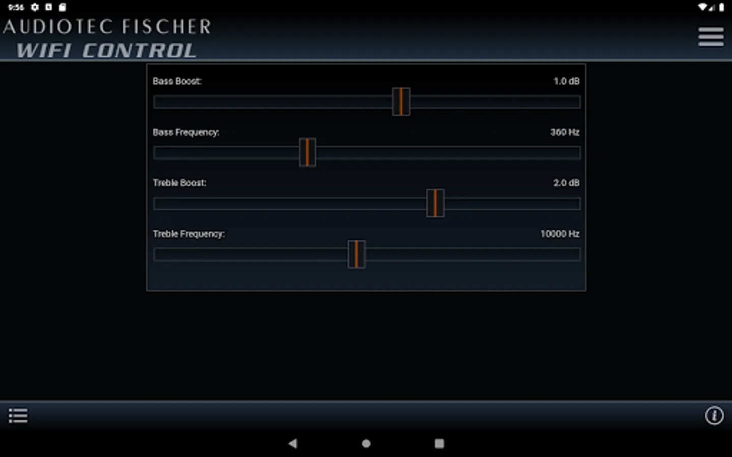 The WIFI CONTROL app is a remote control for your Audiotec Fischer BRAX, HELIX or MATCH DSP product with ACO platform*. To establish the simple wireless connection the necessary WIFI CONTROL interface provides its own network.