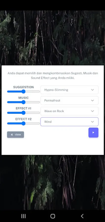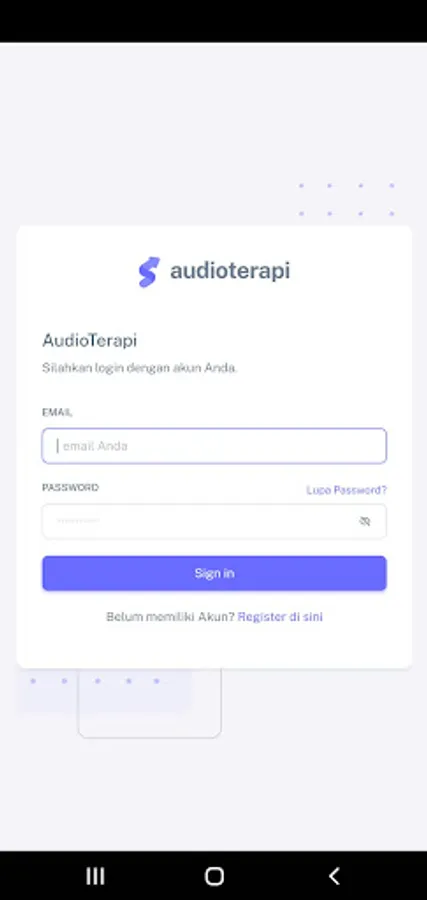 This application is a player / audio therapy player that you have at AudioTerapi.com. Just log in first and immediately select the audio you want to listen to.