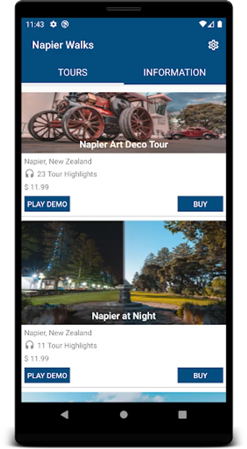 The NapierWalks app offers inexpensive audio tours for Napier area also known as Ahuriri. Our tours are a fascinating and informative guide to the highlights of each city and are designed to be completed in 90 minutes to two hours at walking pace.