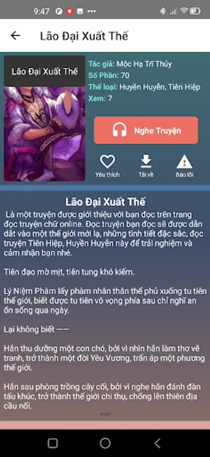 Application to listen to free audio stories with thousands of Audio stories of many genres: Language, Sword Hiep, Tien Hiep, Detective, Ma-Horror...