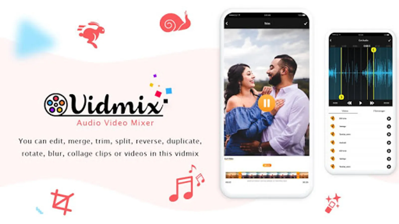 ❤ Easy to use and user friendly UI of audio video editor mixer app.