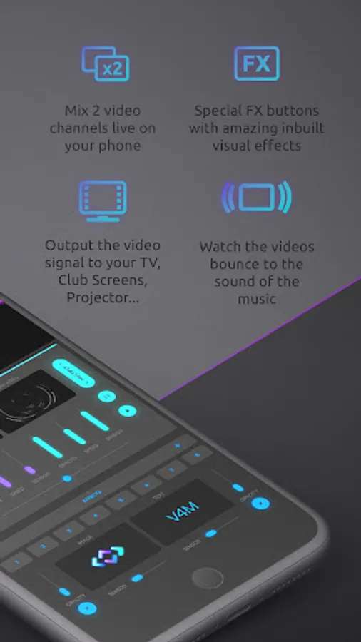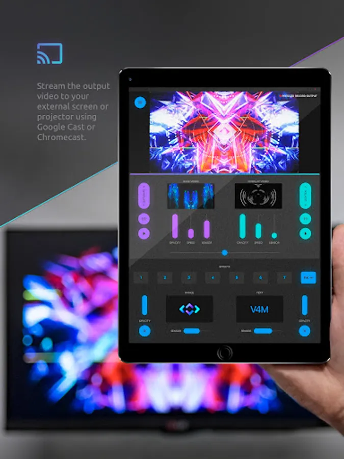 Use your Android phone or tablet to mix visuals live like a professional VJ with “V4M: Visuals for Music”, a cool new app that pushes your device to the limit. With an external casting device like Google Chromecast™ you can even send your live output image to your TV, club's projectors or festival's LED walls!
