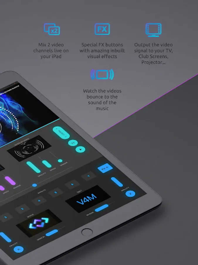 V4M is suitable to deliver a semi-professional VJ mix for any live event or concert, but it’s also so easy to use that any amateur can turn their house party into a truly memorable gig.