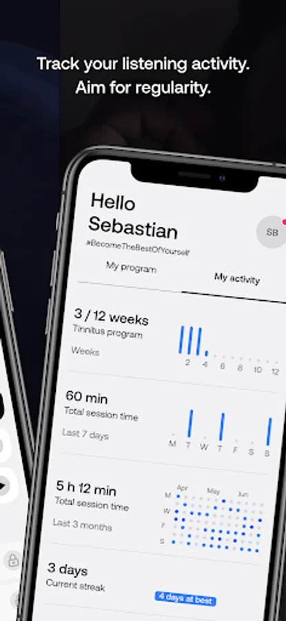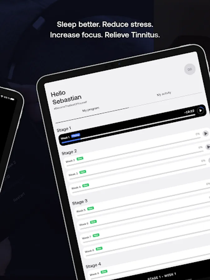 To begin your journey, we offer a 3-month starting program for either Vitality (Sleep, Focus, Relaxation) or Tinnitus concerns including our mobile APP and Remote Therapy. You will get:
