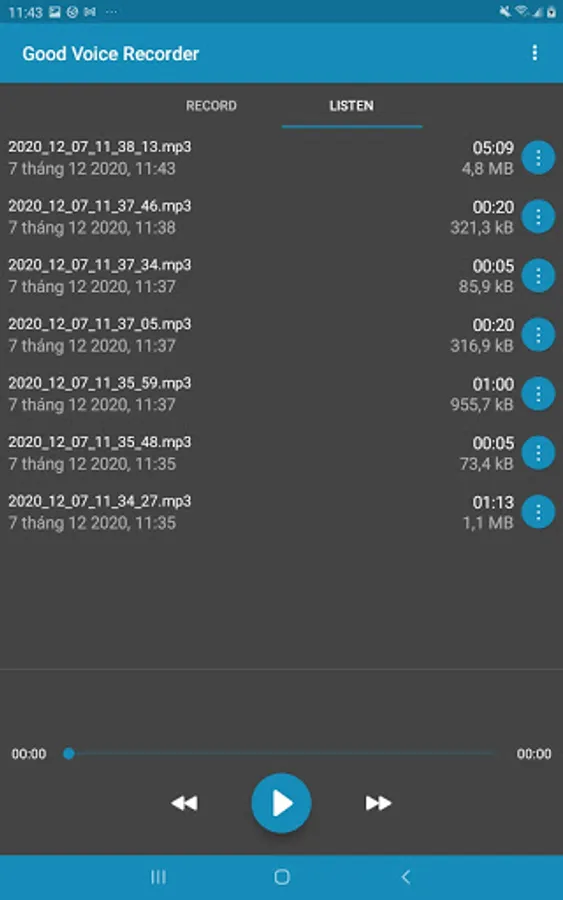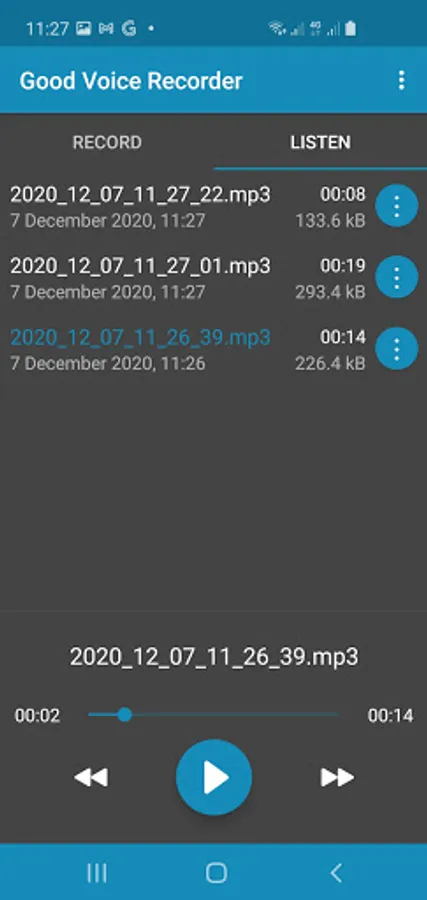 With simple & slick design, this app is very user-friendly & easy to use, which makes it a perfect portable audio recorder. Just tap on the record button to have your mp3 audio ready to listen later.
