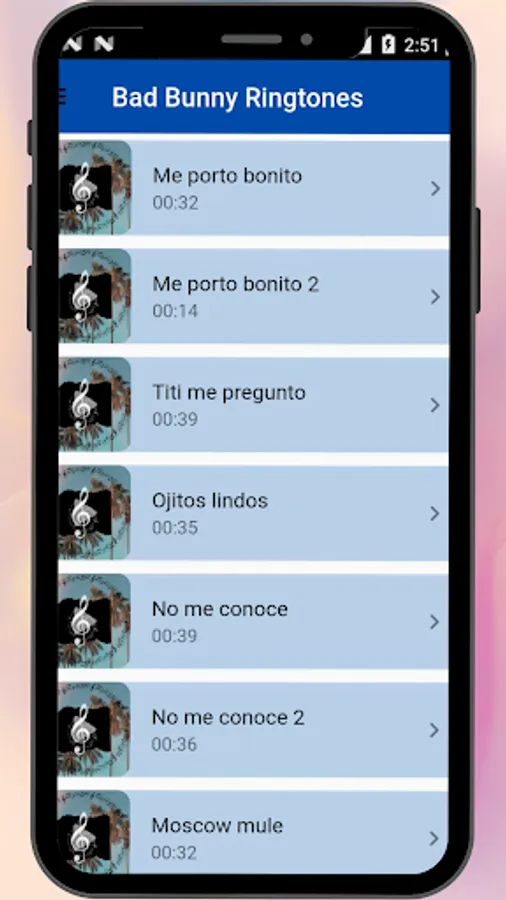 Do not miss it, install this application now and enjoy the best Bad Bunny songs, enjoy this compilation of hits and make your favorite Bad Bunny song your notification, call, alarm clock or message ringtone.