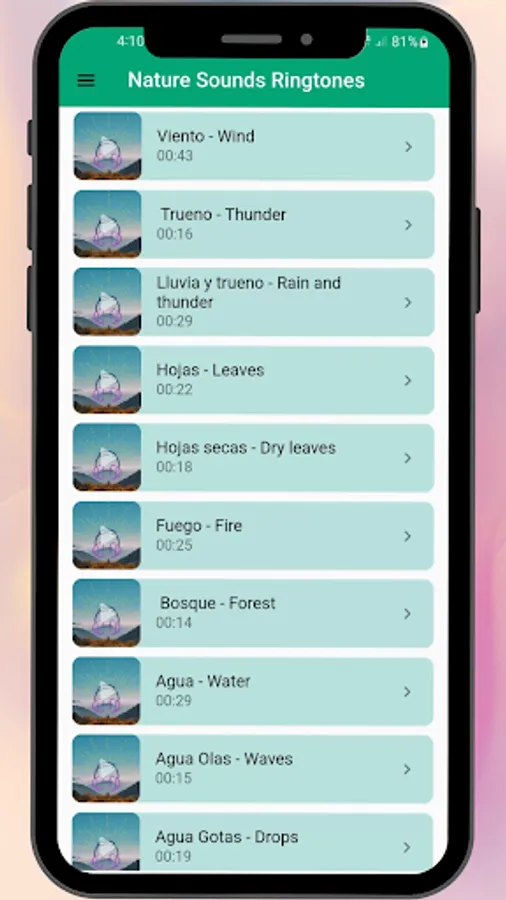 Through this free application of nature sounds, find the best ringtones and notifications for you to download and enjoy on your mobile phone.