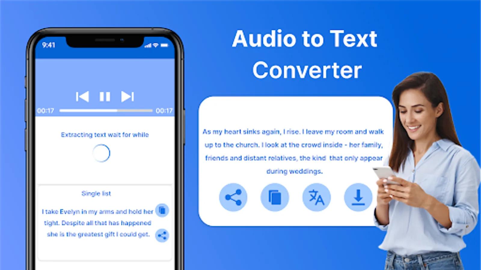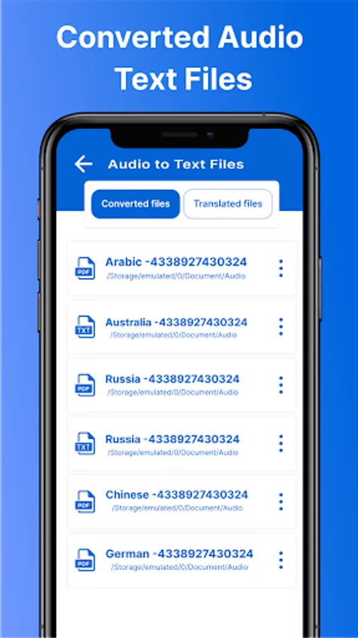Most of the times you need to play audio in different languages and you cannot clearly understand the audio language, so we bring such a nice tool called Audio to Text Converter which allow you to extract text from audio. And you can easily convert it into your understandable language easily. Audio file to text converter app convert the extracted text to txt, Html and pdf form. All languages audio to text transcriber. One of the most significant problem now a days is to copy a text from audio and it is very hard to write text from listening long audio. The offline audio to text transcriber app brings such a nice feature to convert audio to text with accuracy in second.