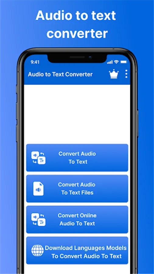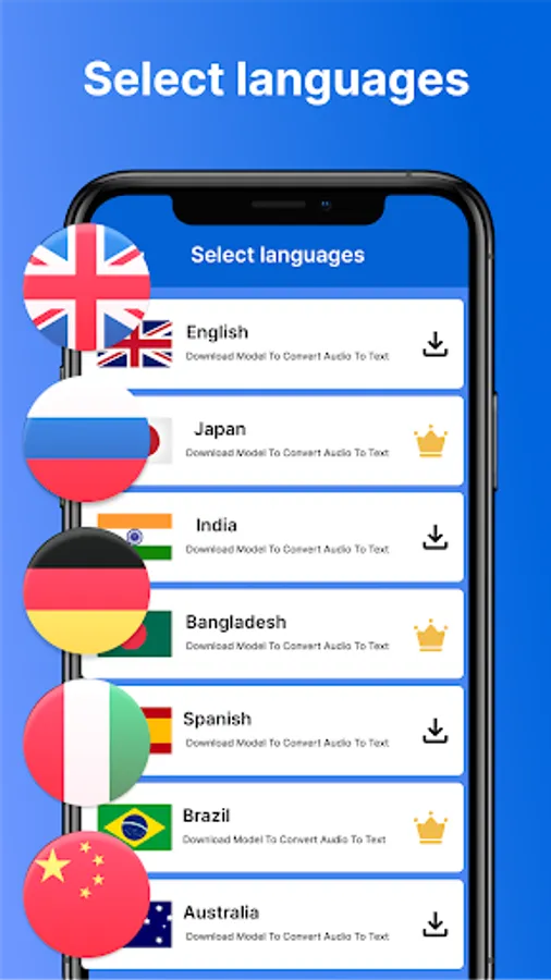 The Audio Transcriber app work with high accuracy you can convert any audio to text offline. First download model for offline mode to convert audio to text into 60+ languages. Audio to Text Converter has 60+ languages models to convert audio to text. Once you download language model, then easily convert audio to text or extract text from audio offline.
