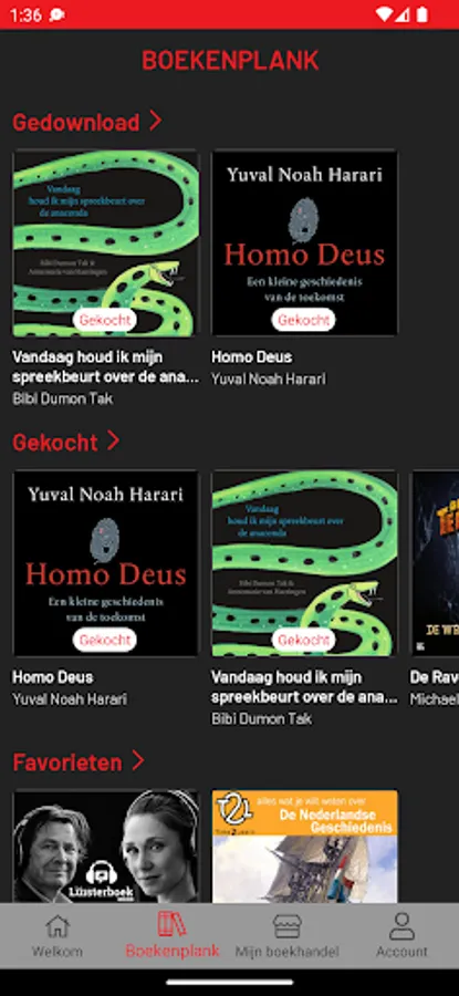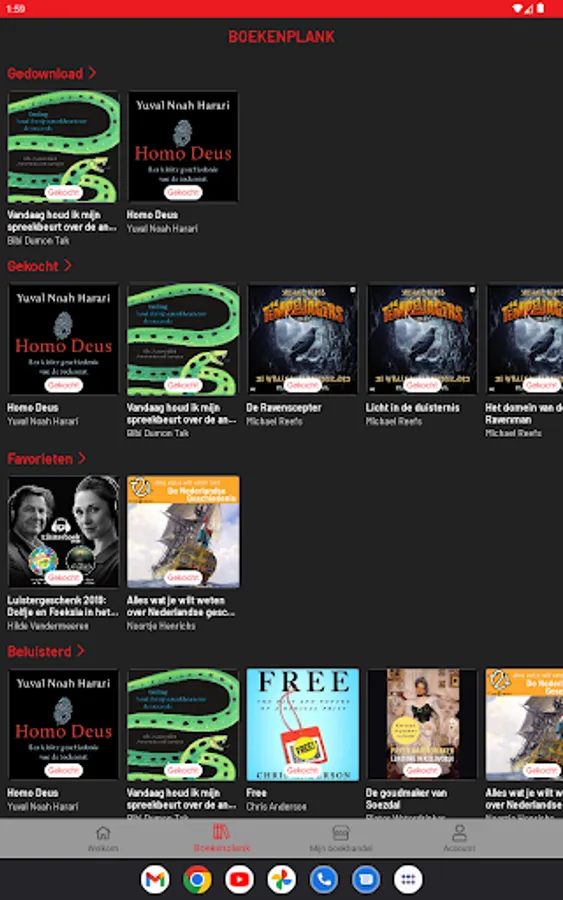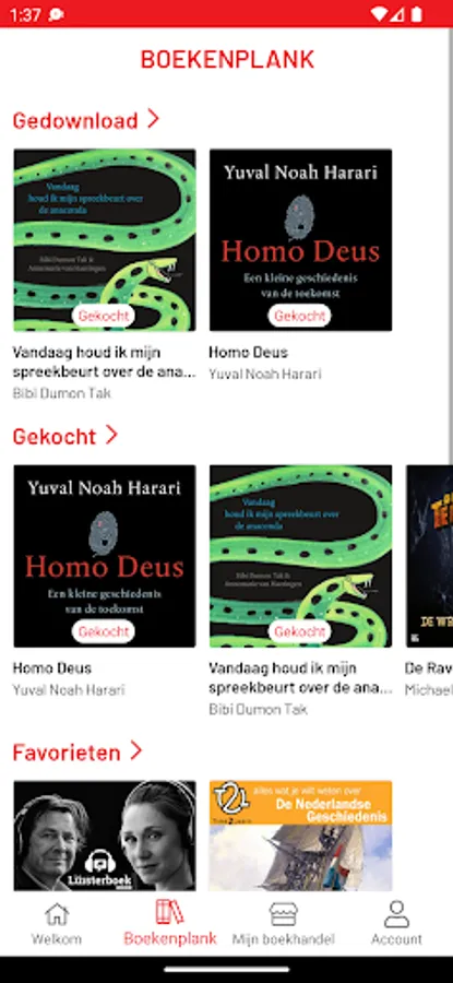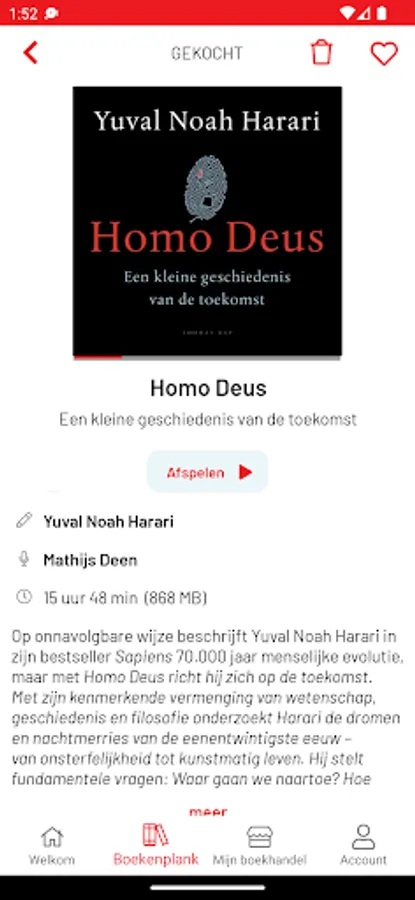NB: buy your audiobooks in the webshop of libris.nl. Buying in the app is not possible.