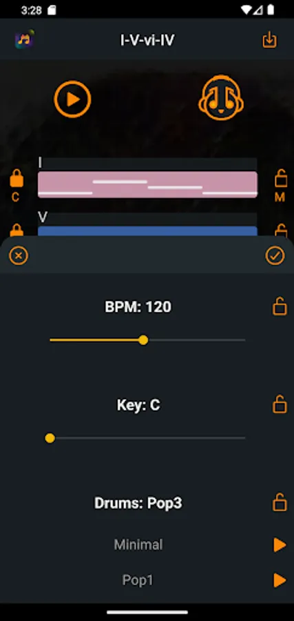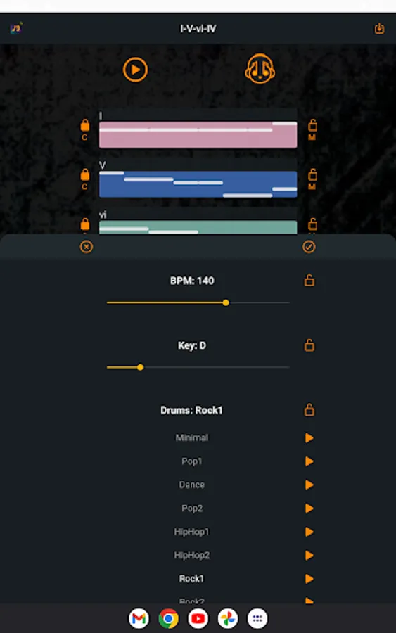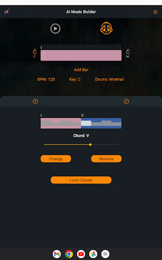 Use this AI music builder to instantly generate melodies and harmonies, and then customize the song by locking melodies or chords