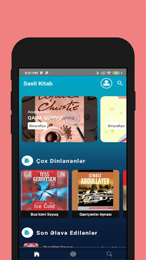 Bu tətbiq vasitəsilə siz, müxtəlif kitabları Azərbaycan dilində keyfiyyətli, peşəkar səsləndirilmiş formada dinləyə biləcəksiniz.