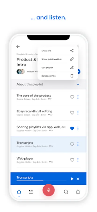 Information gets perfectly structured in playlists that can be shared in Audvice or on other platforms.
