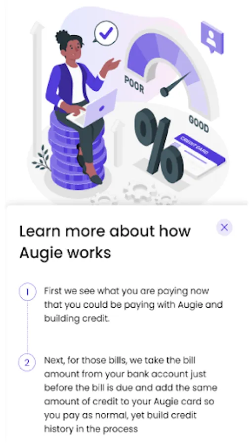 GetAugie is a financial wellness platform which contains a secured Credit Card designed to assist you in building a positive credit history.