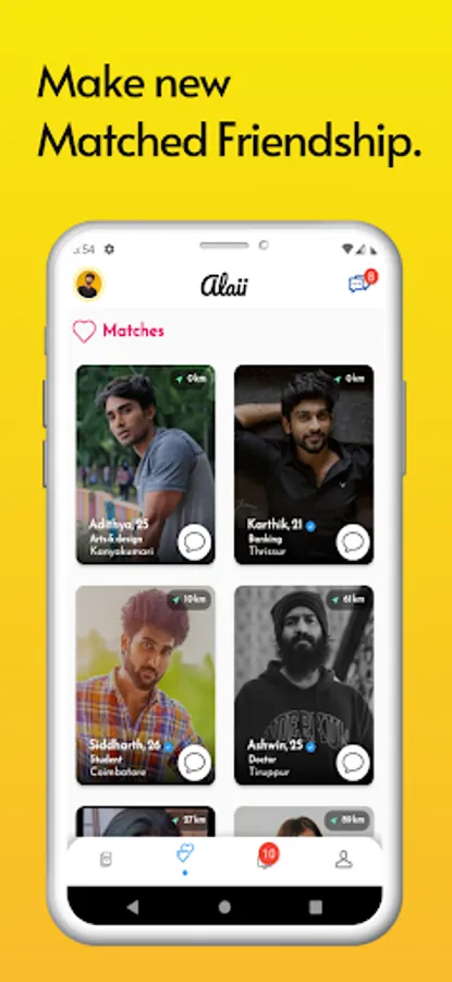You can see your matches who belong to your age group, organisation, and city.