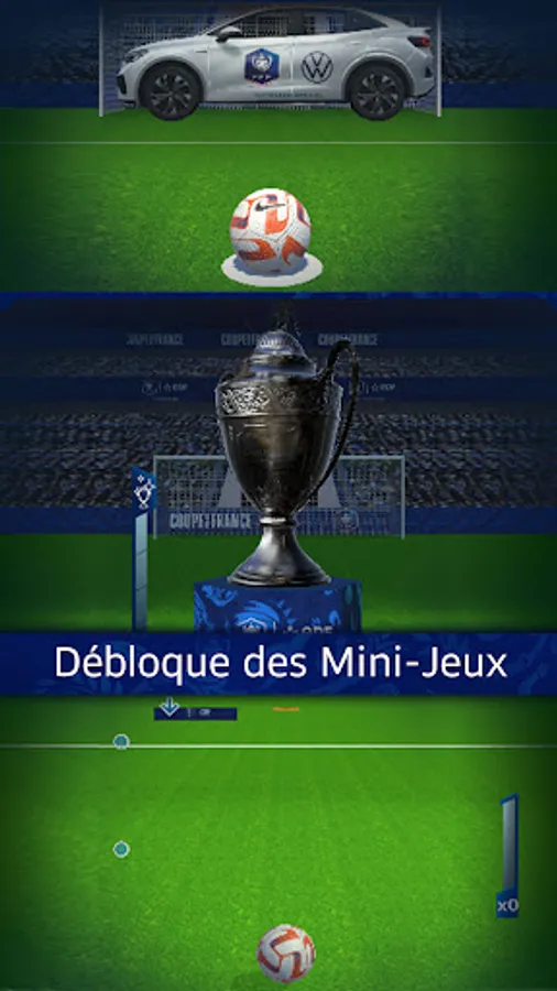 Join millions of supporters and explore your city in search of mini-games. You will discover many mini-games accessible in augmented reality and 3D. Each more amusing than the other, they will allow you to earn points embodied by soccer balls. Accumulate as many balloons as possible and take full part in the Coupe de France!