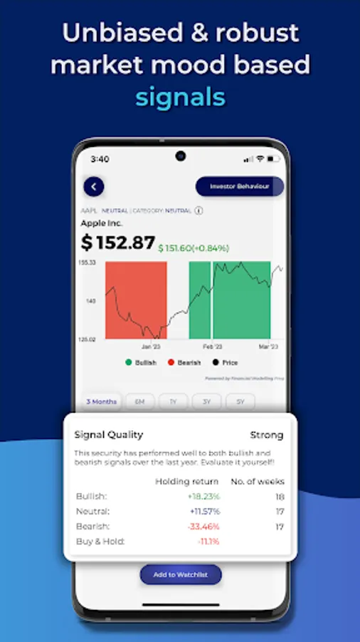 We are big believers in the “Wisdom of The Crowds”, a theory that suggests that no single expert can consistently beat “Crowd” behaviour. Keeping this in mind, we have added unique signals that encapsulate market mood. These signals are back-tested, have statistically significant predictive power and their historical performance is available for users for evaluation.