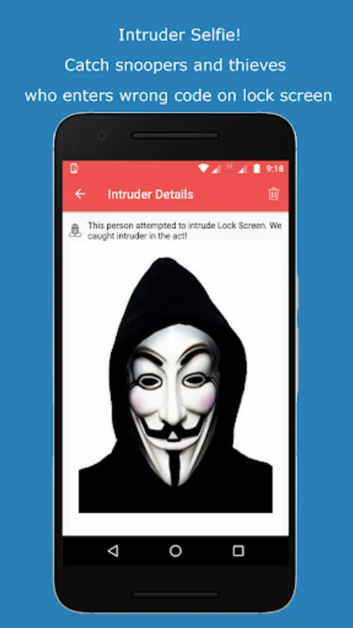 Intruder Catcher: Lock Screen and App protection by Augustro is a powerful security app. It hides behind your lock screen and if someone tries to unlock your phone with the wrong code, it takes a picture of the person with the front facing camera and immediately emails the photo of the intruder to you. Also it can lock access to your private apps with fingerprint/pin/pattern and can capture intruder selfies at app lock screen too. It has no advertisements.