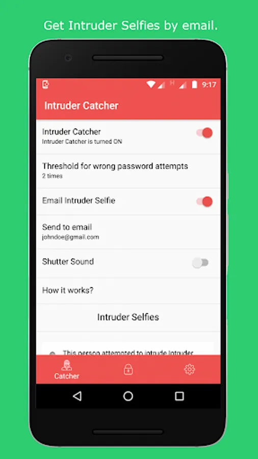 âš To Uninstall Intruder Catcher: For added security uninstalling of Intruder Catcher will not be easy. You have to open Intruder Catcher and go to "Settings", and click "Uninstall Intruder Catcher" option. Or you can disable Device administrator access of Intruder Catcher and uninstall the app normally.
