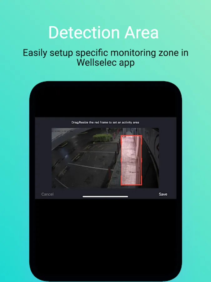 3. Detection Area - Easily setup specific monitoring zone in Wellselec app. Draw lines/zones for concerned areas like entries/exits and stay focus.