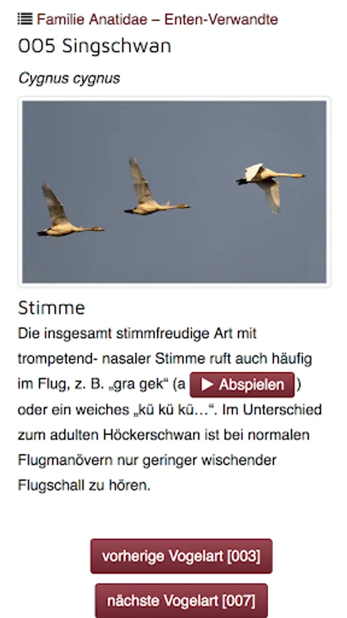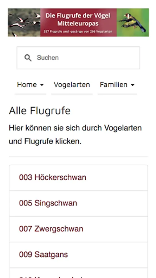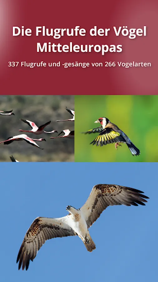 This handy app uniquely combines text and image existing Artporträts of 266 bird species occurring in Europe with 337 bird sounds recordings. The app ensures a clear and rapid navigation between the calls, songs and descriptive texts. With this new destination app every observation becomes a knowledgeable experience!