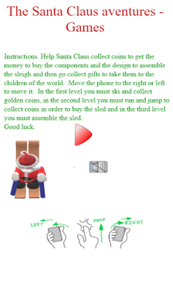 Help Santa Claus collect coins to get the money to buy the components and the design to assemble the sleigh and then go collect gifts to take them to the children of the world.