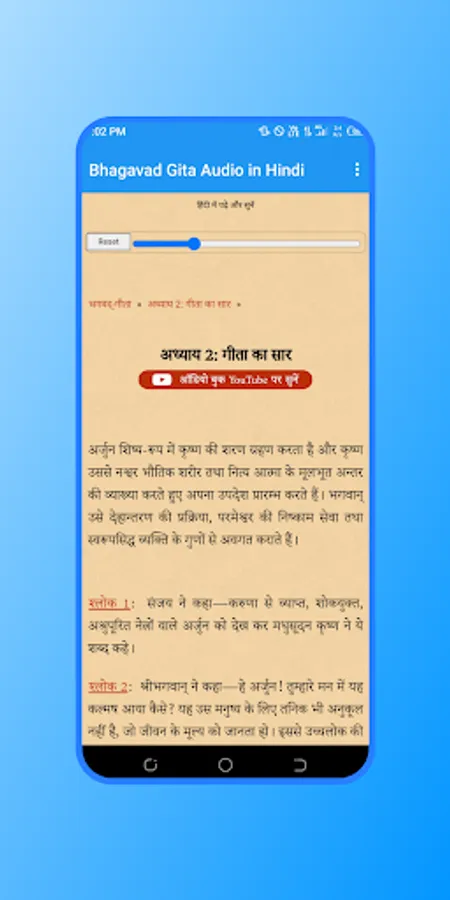 One of the most notable features of the app is that it offers a comprehensive and accurate translation of the original Sanskrit text into Hindi. This ensures that listeners can truly understand the meaning and essence of the Gita, even if they do not speak Sanskrit.