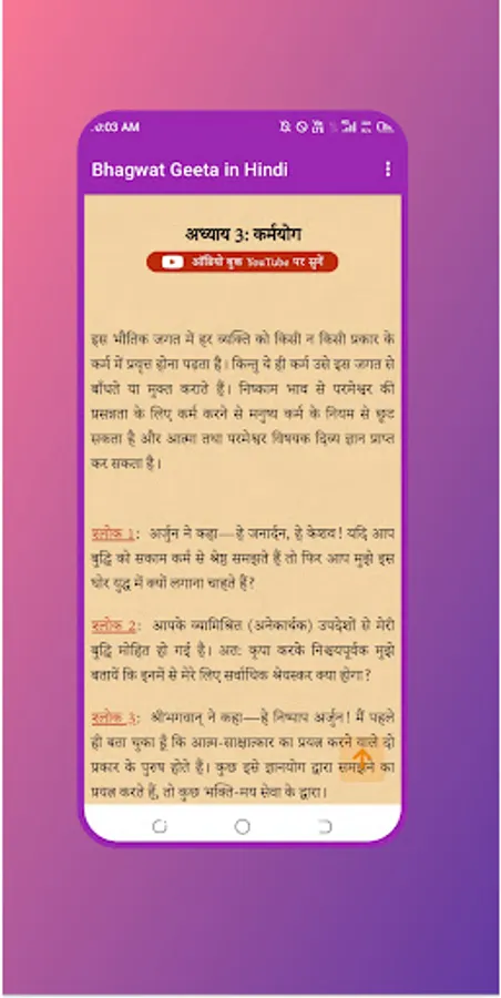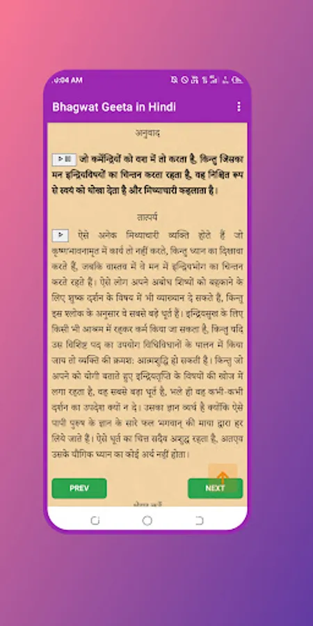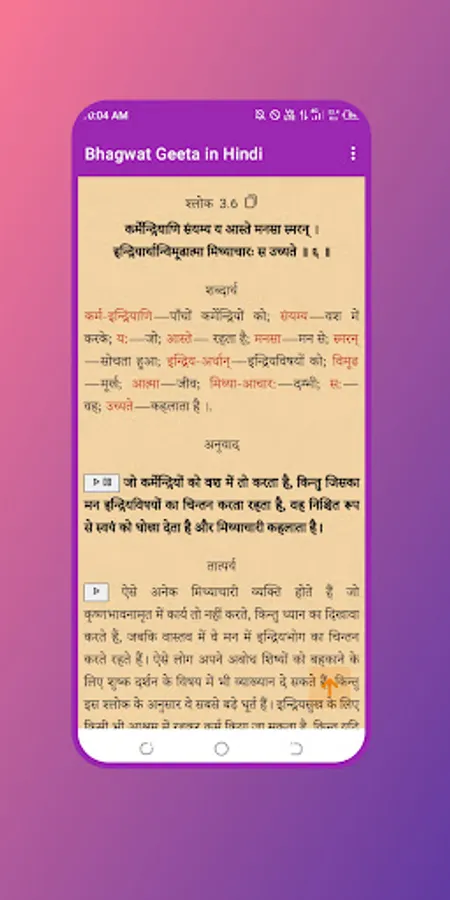 The app also includes a detailed commentary on each verse of the "Bhagavad Gita" written by experienced scholars who have devoted their lives to studying and interpreting the text. This commentary provides a deeper understanding of the verses and their significance, helping you to apply the teachings to your daily life.